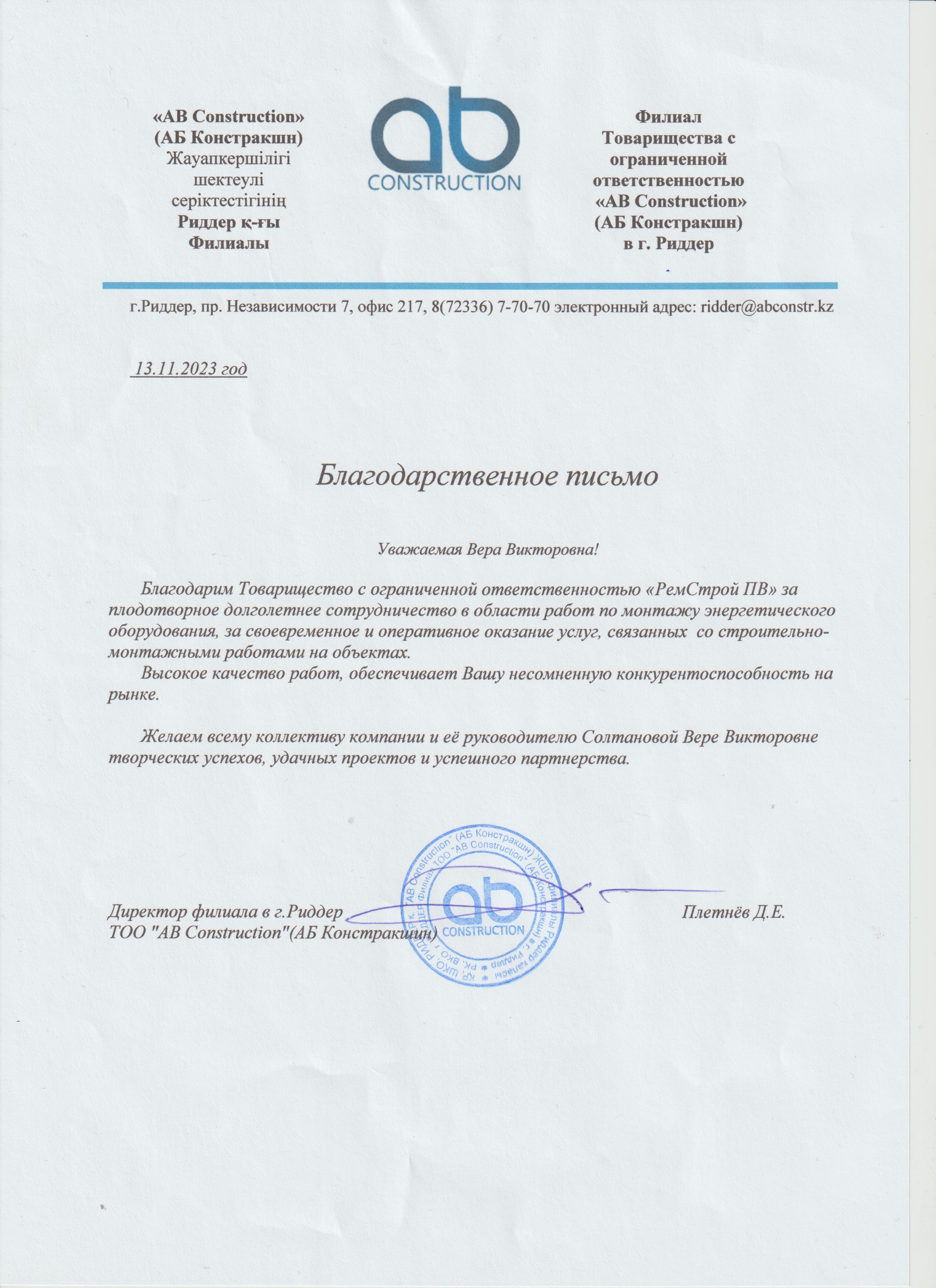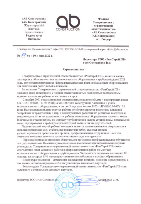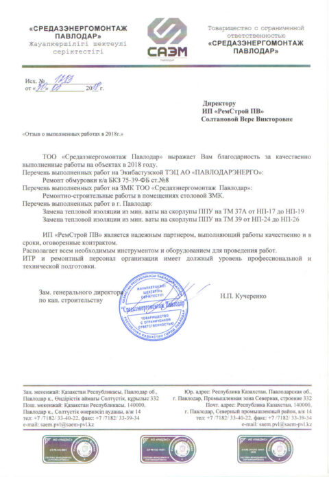 Товарищество с ограниченной ответственностью «РемСтрой ПВ» имеет многолетний опыт успешной работы.